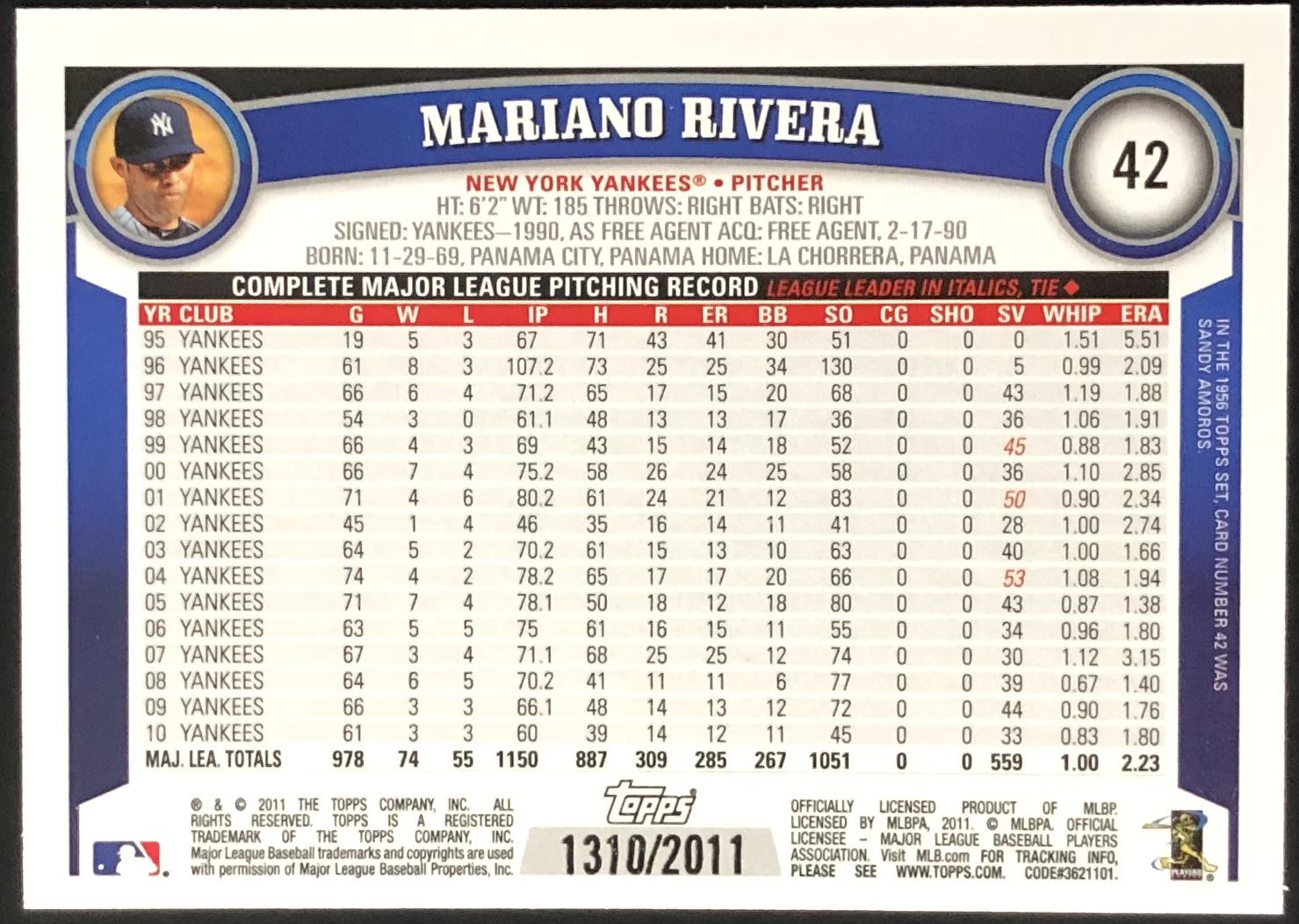 #1310/2011 Card #42 MLB, baseball, hall of fame