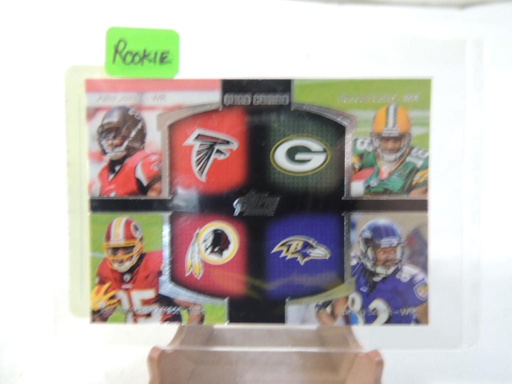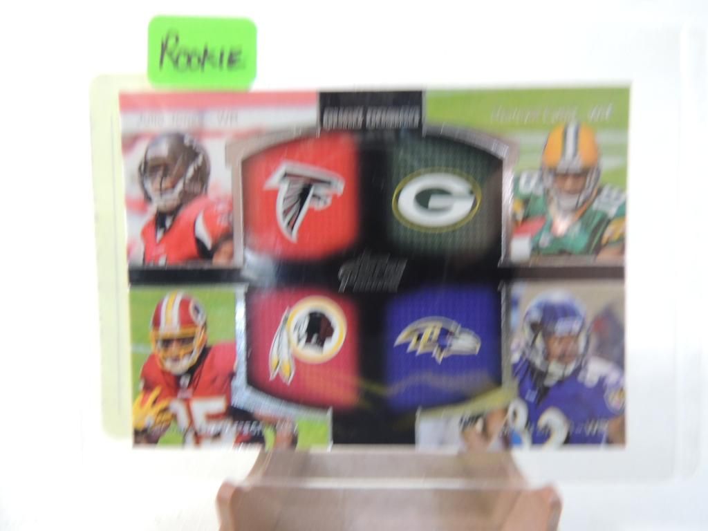 JULIO JONES, RANDALL COBB LEONARD HANKERSON, TORREY SMITH FOOTBALL PLAYER CARDS. TRADING CARDS. COLLECTIBLE. FOOTBALL MEMORABILIA. GOOD CONDITION AS SHOWN. SEE PHOTO FOR MORE DETAILS.