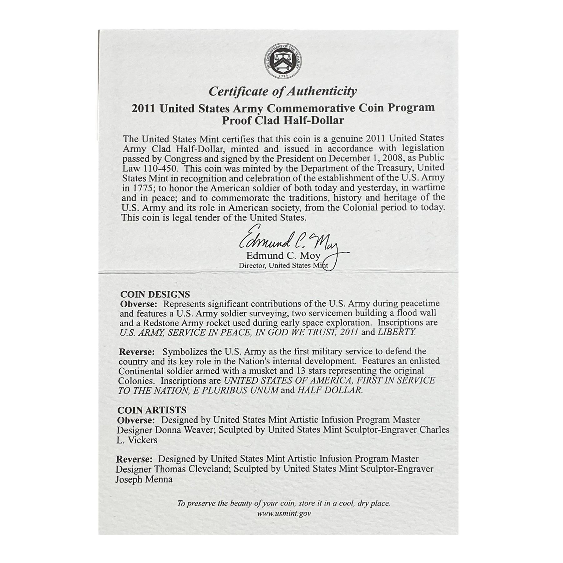 2011 U.S. Army Proof Clad Silver Half Dollar