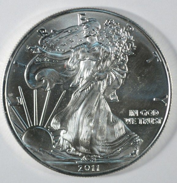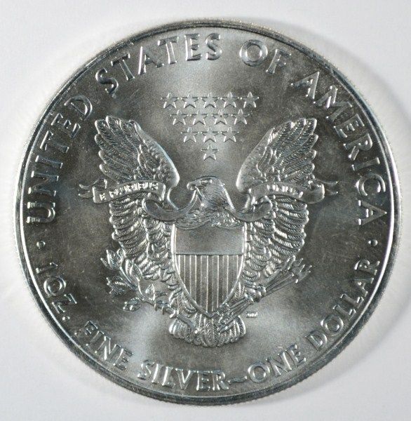 A VERY NICE GEM BU ONE OUNCE SILVER EAGLE FROM THE UNITED STATES MINT, EST. $50.00 TO $55.00
