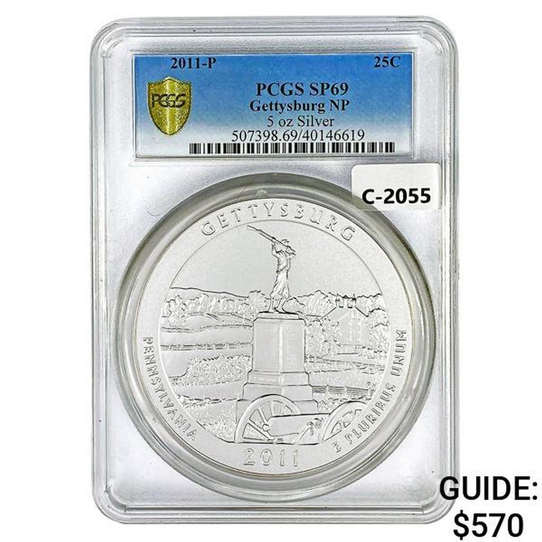 2011 US 5oz Silver Gettysburg Round PCGS SP69