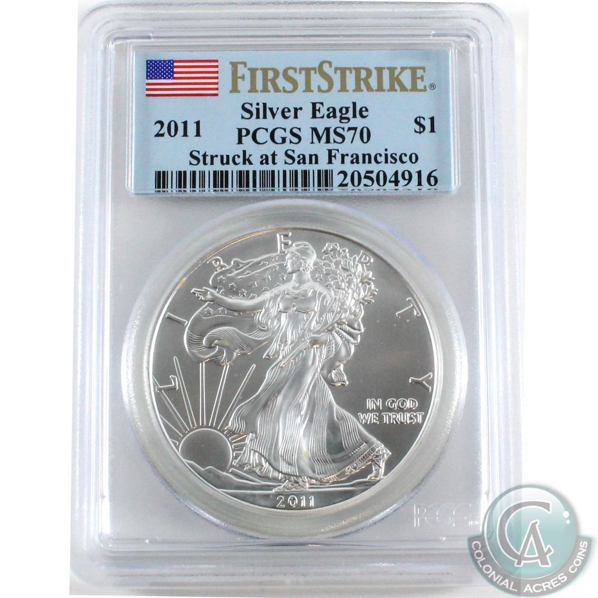 2011 USA $1 Silver Eagle 1oz Fine Silver PCGS Certified MS-70 ** First Strike*(Tax Exempt)