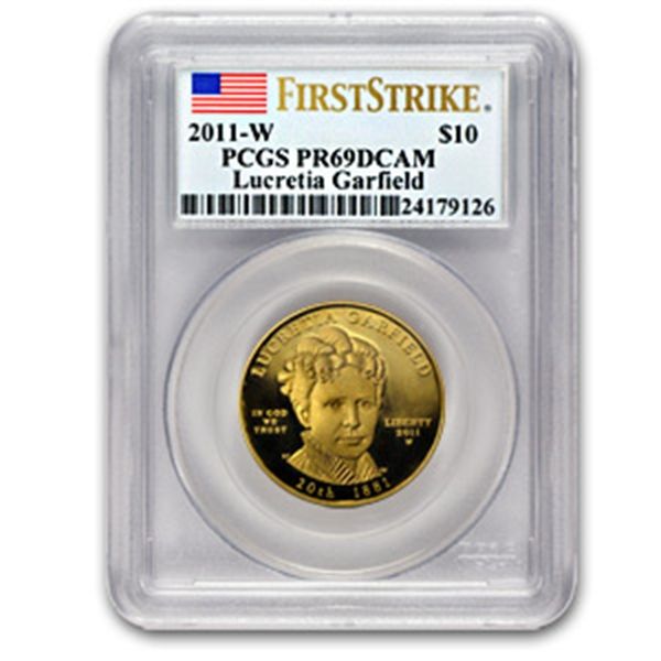 VDG**66243Year**2011MintMark**W-West Point Grade**PR-69 DCAMDenomination**10Diameter**26.49mmThickness**1.88mmInnerPack**N/AOuterPack**N/ARemarks**Lucretia Rudolph Garfield was the wife of James Garfield, the twentieth President of the United States