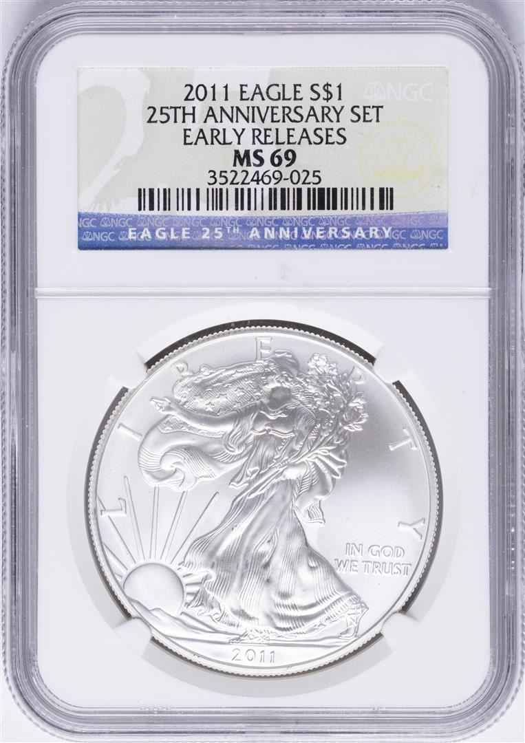 One 2011-W $1 American Silver Eagle Coin NGC MS69 Early Releases. NGC Certified.