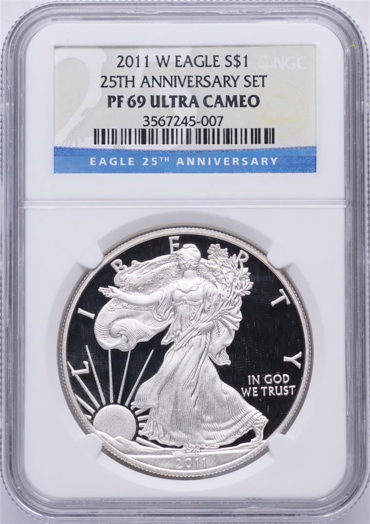 One 2011-W $1 American Silver Eagle Coin NGC PF69 Ultra Cameo. NGC Certified.