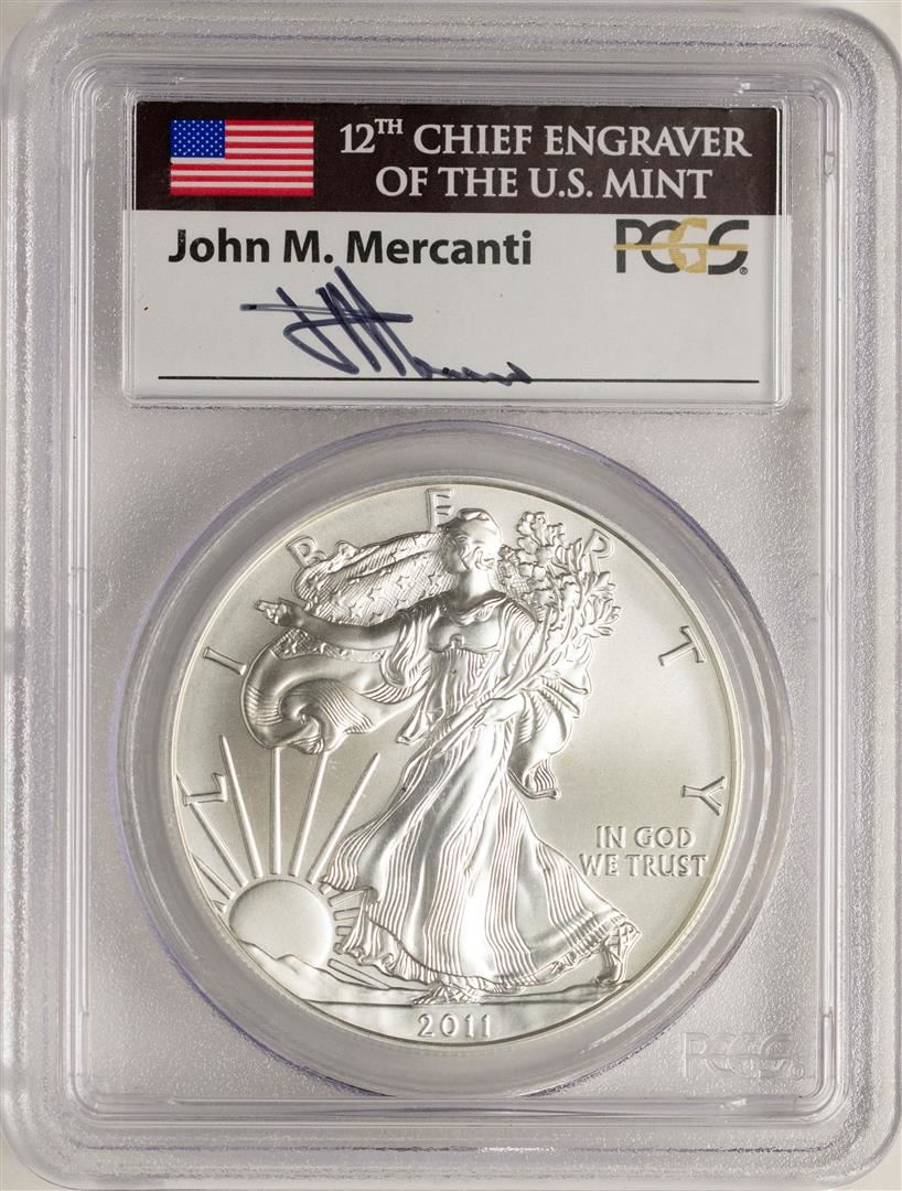2011-W $1 American Silver Eagle Coin PCGS MS70 Mercanti Signature