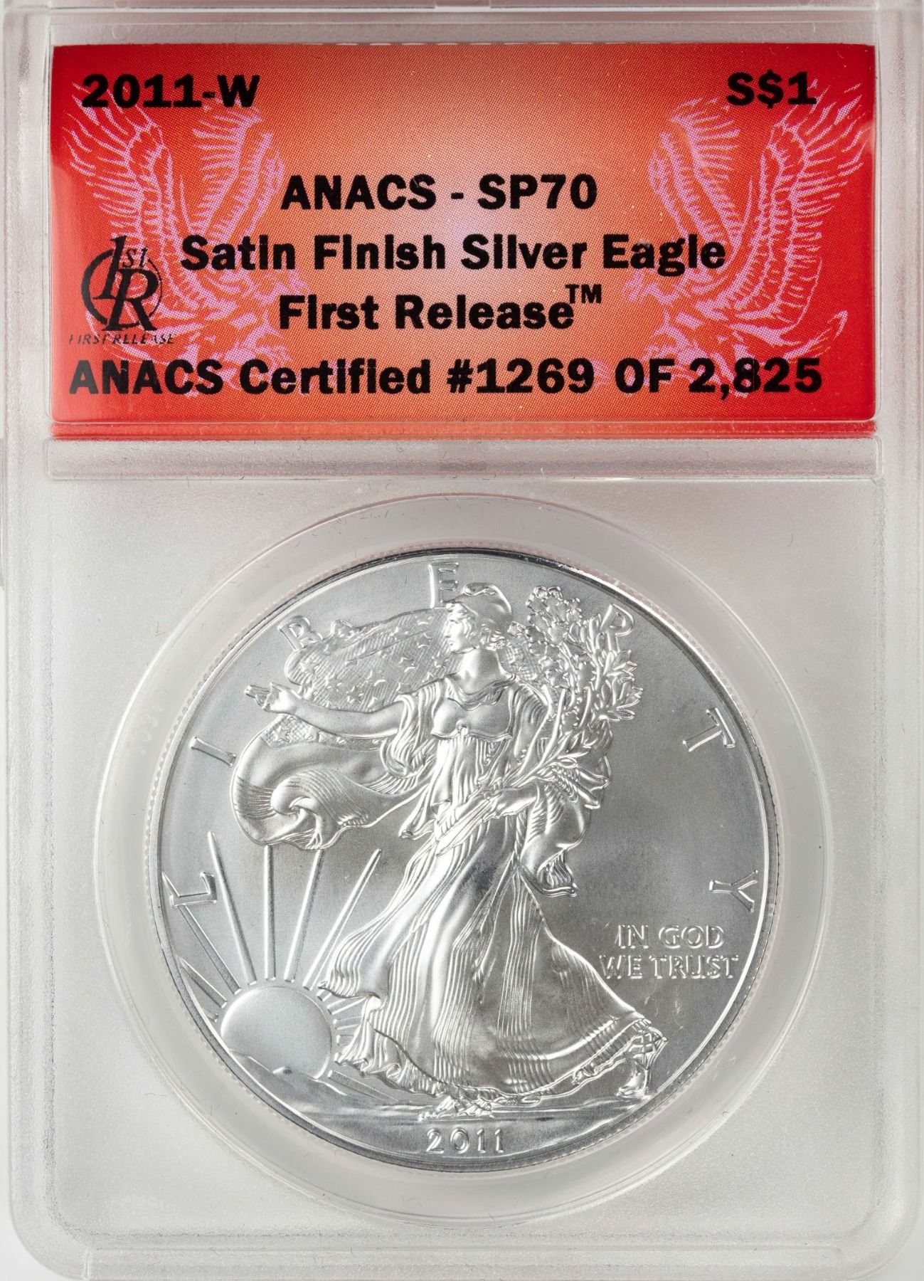 One 2011-W $1 American Silver Eagle Coin Satin Finish ANACS SP70 First Release.