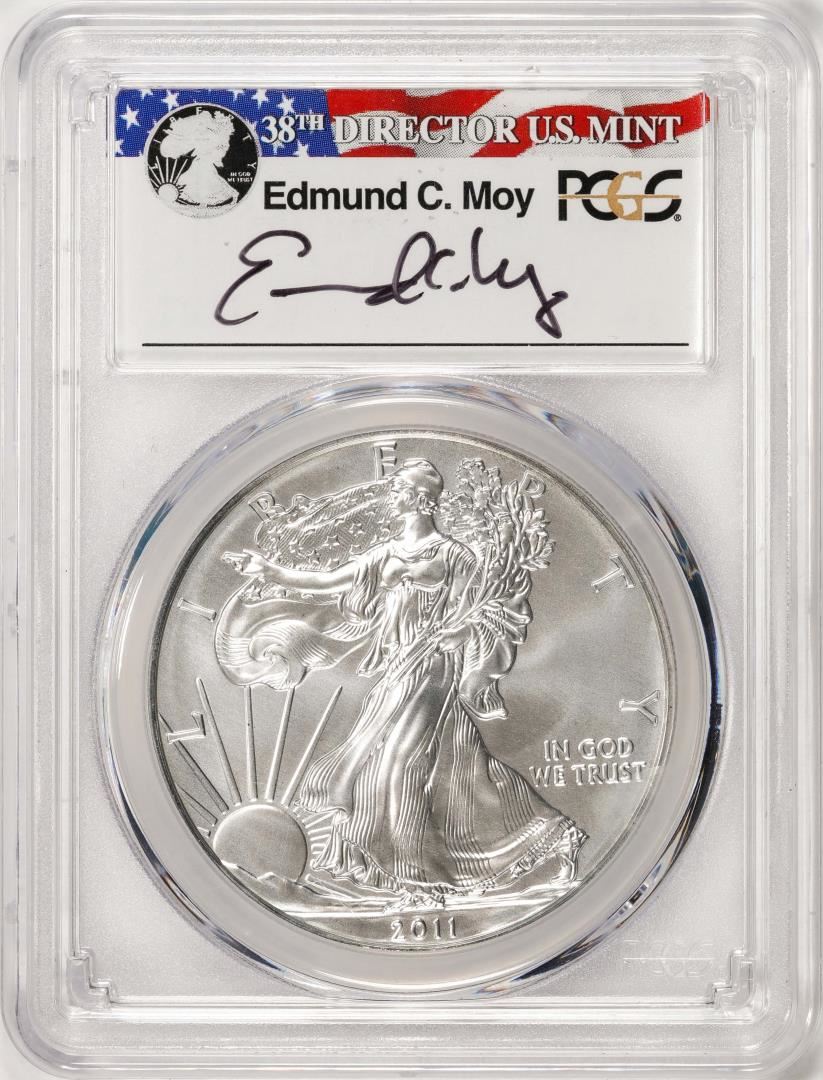 2011-W $1 Burnished American Silver Eagle Coin PCGS SP70 Edmund C. Moy Signature