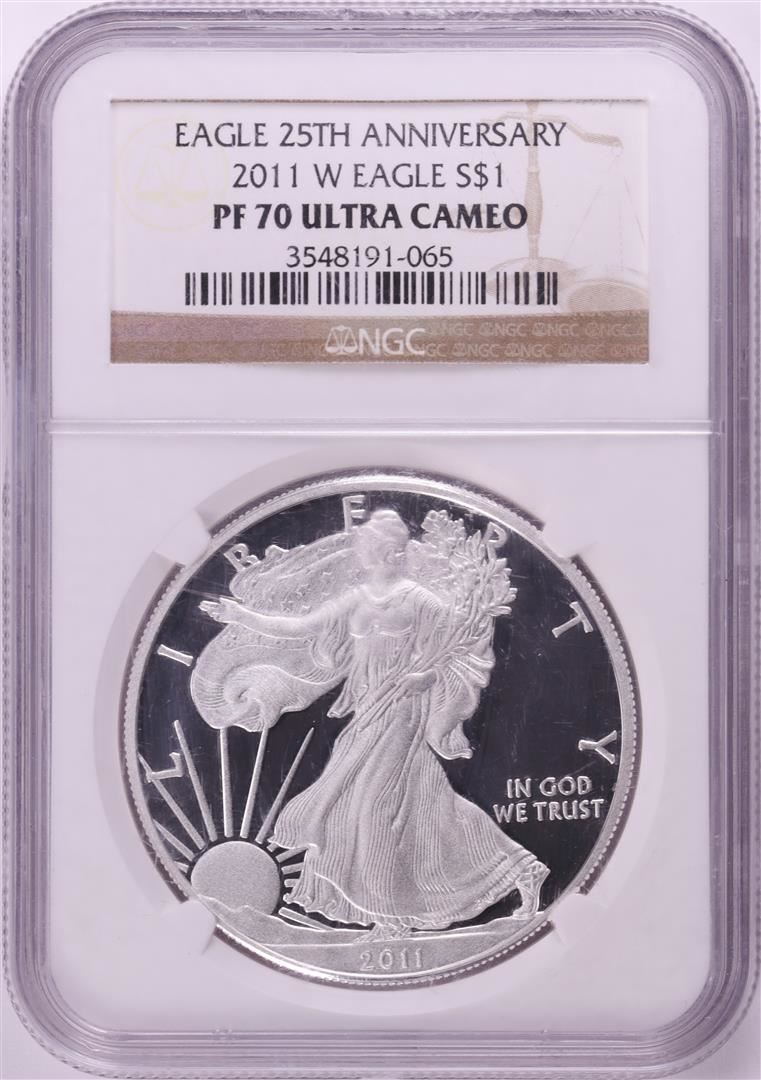 One 2011-W $1 Proof American Silver Eagle Coin NGC PF70 Ultra Cameo. NGC Certified.