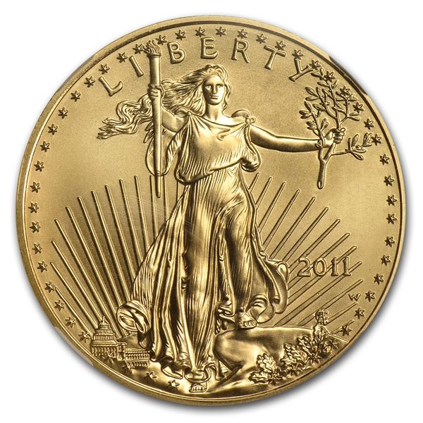 2011-W 1 oz Burnished Gold American Eagle MS-70 PCGS **|**|** 2011-W 1 oz Burnished Gold American Eagle MS-70 PCGSYear ***2011Grade***MS-70Denomination**50Dim.**32.7Thick:**2.87mm ; MSRP: $17600