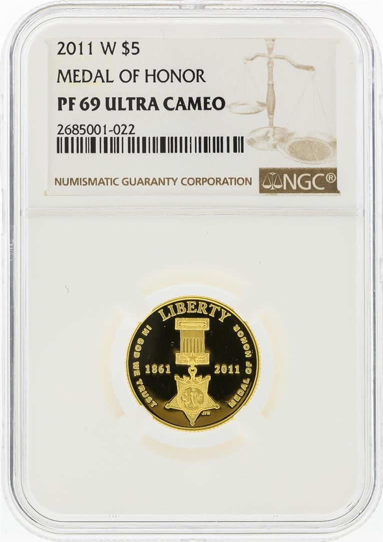 2011-W $5 Medal of Honor Gold Coin NGC Graded PF69 Ultra Cameo