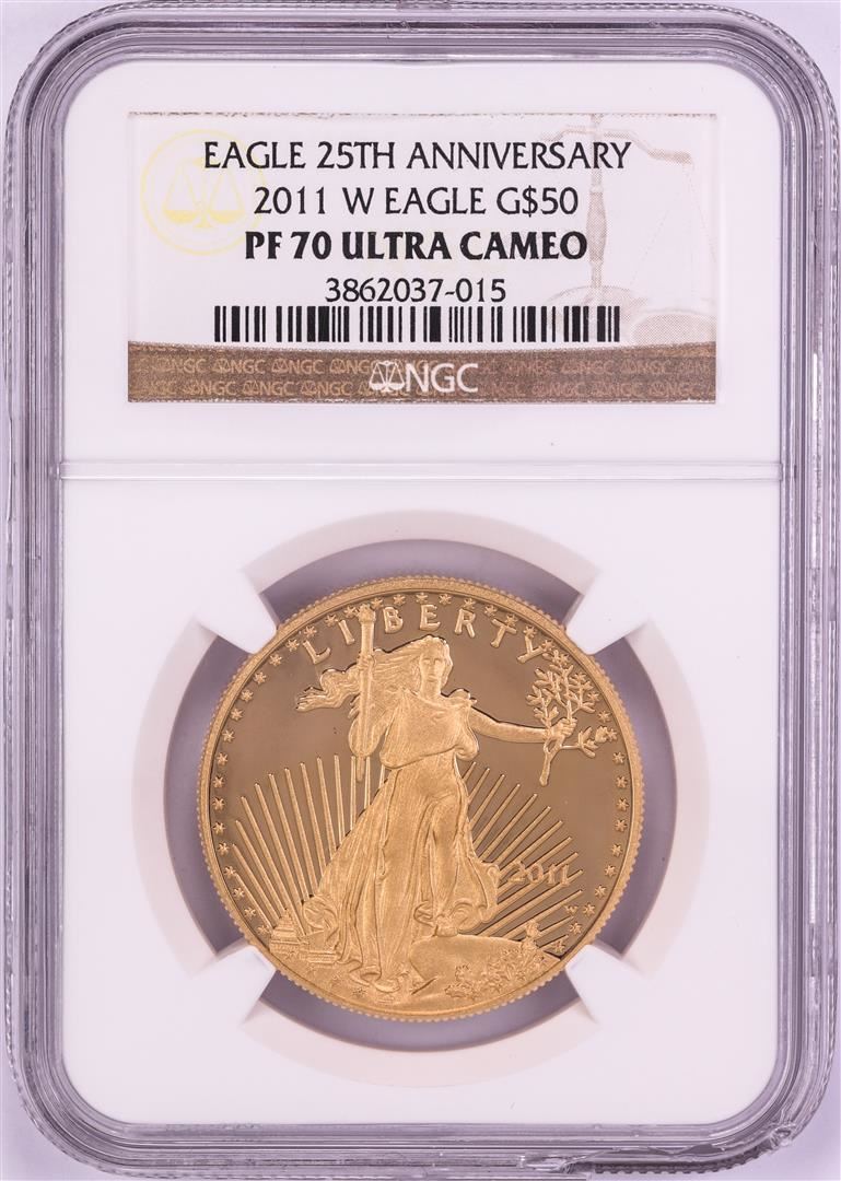 One 2011-W $50 Proof American Gold Eagle Coin NGC PF70 Ultra Cameo. NGC Certified.