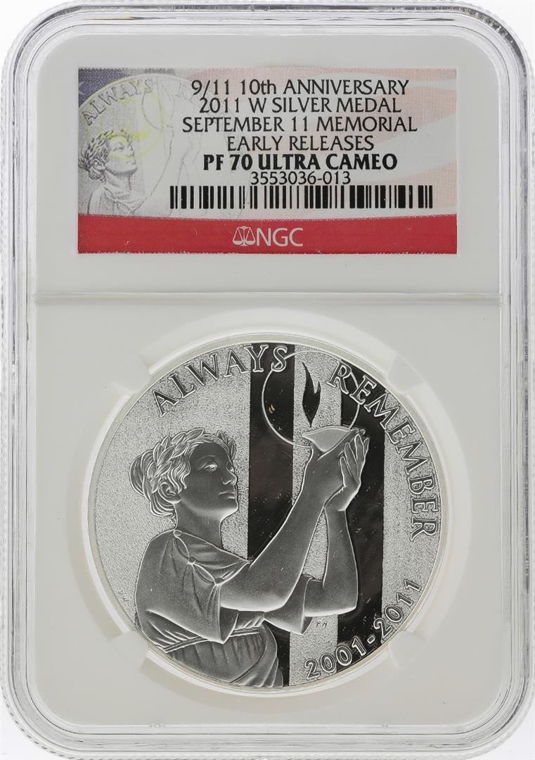One 2011-W 9/11 10th Anniversary Silver Medal NGC PF70 Ultra Cameo Early Release. NGC Certified.