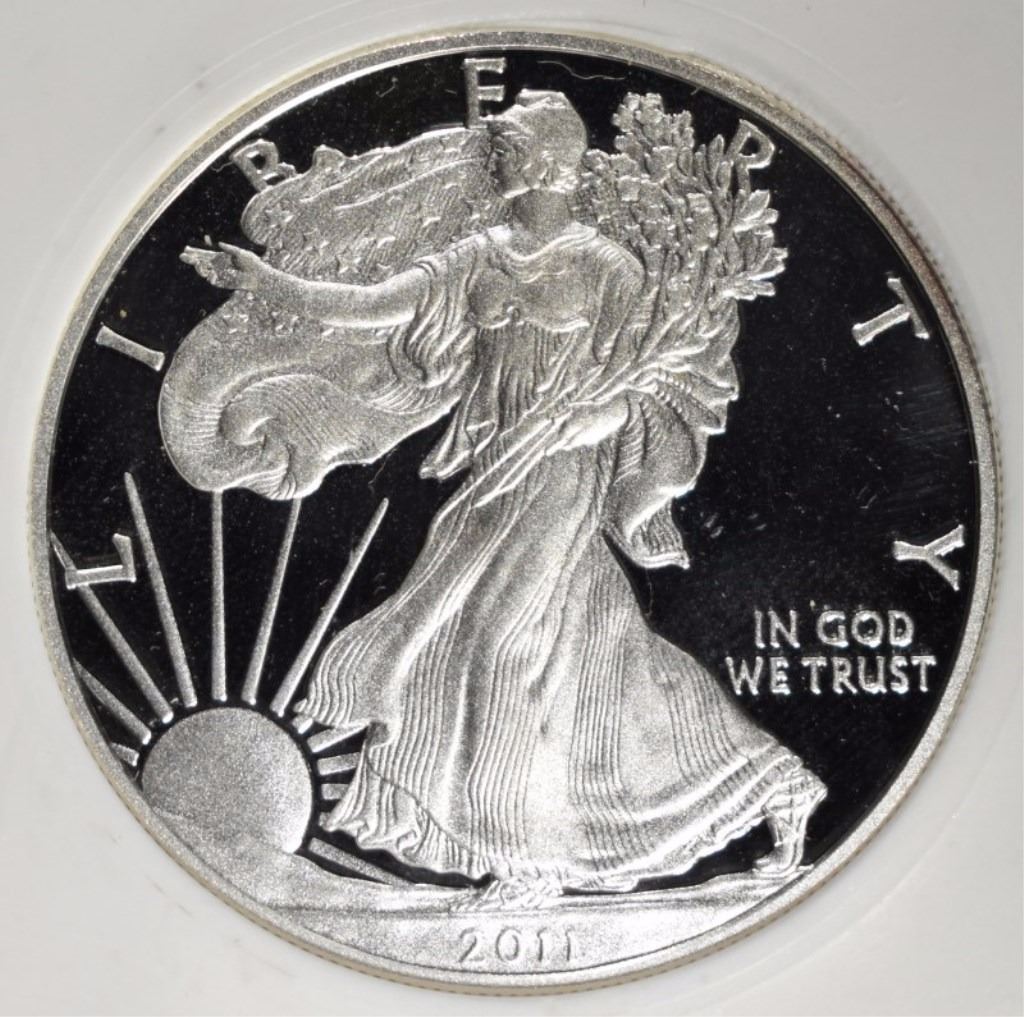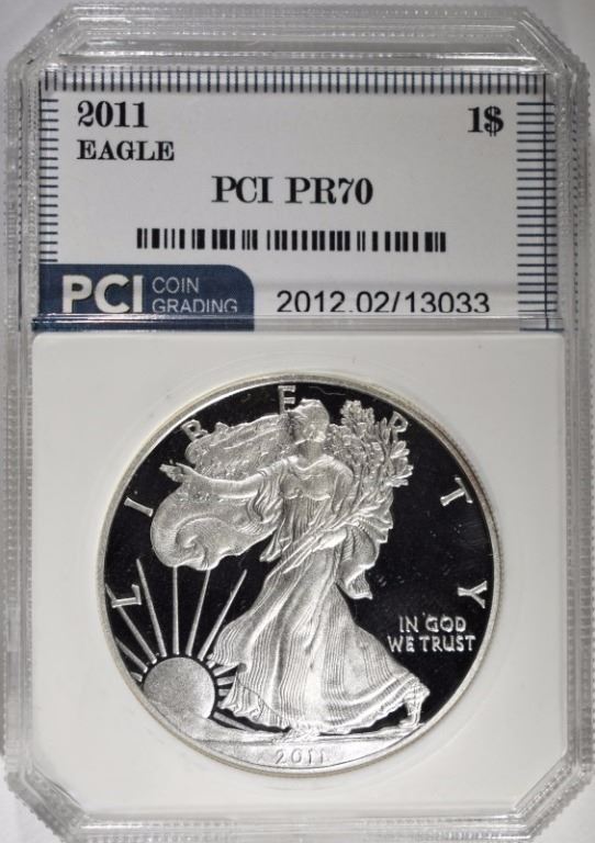 2011-W AM. SILVER EAGLE, PCI PERFECT GEM PROOF ESTIMATE $75 - $85.