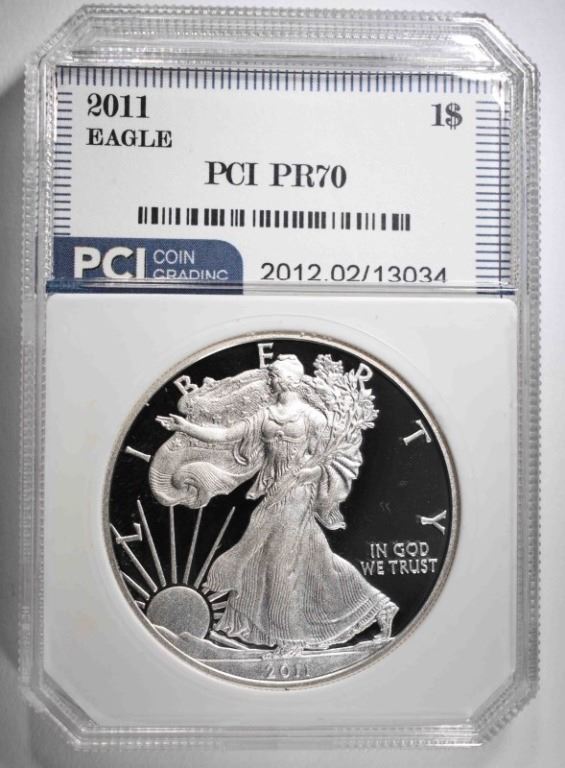 2011-W AMERICAN SILVER EAGLE, PCI PERFECT GEM PROOF ESTIMATE $75 - $85.