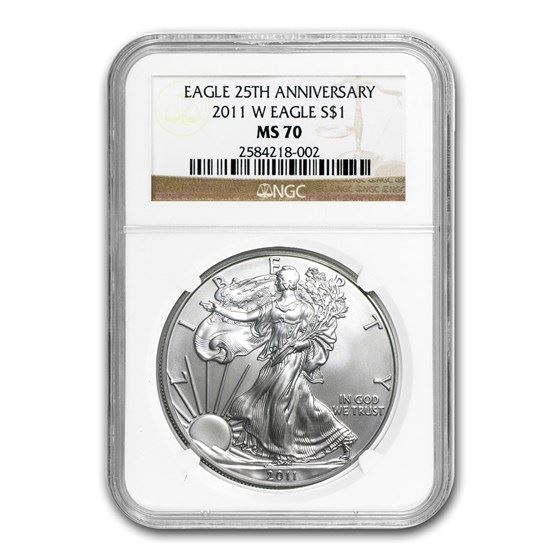 One piece 2011-W Burnished Silver Eagle MS-70 NGC (25th Anniv)