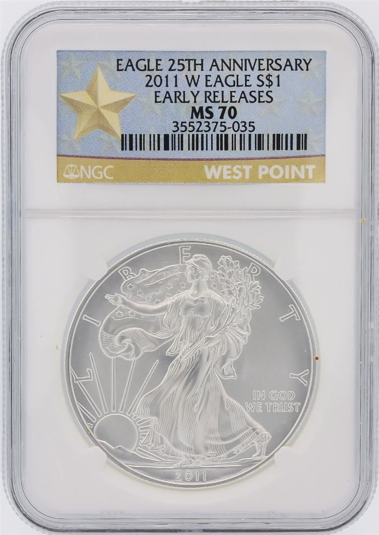 One 2011-W NGC Graded MS70 $1 American Silver Eagle Silver Coin. NGC Certified.