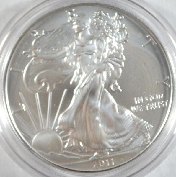 A VERY NICE PRESENTATION OF A GEM BURNISHED SILVER EAGLE, EST. $50.00 TO $55.00
