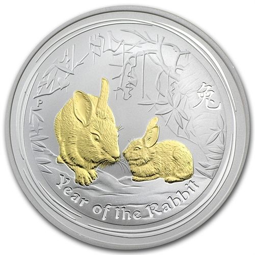 2011 Year of the Rabbit - 1 oz Gilded Silver (SII) (W/B **|**|** Year: 2011 ; Mint Mark: Brilliant Uncirculated ; Grade: P - Perth Mint ; Denomination: $1 ; MSRP: $100