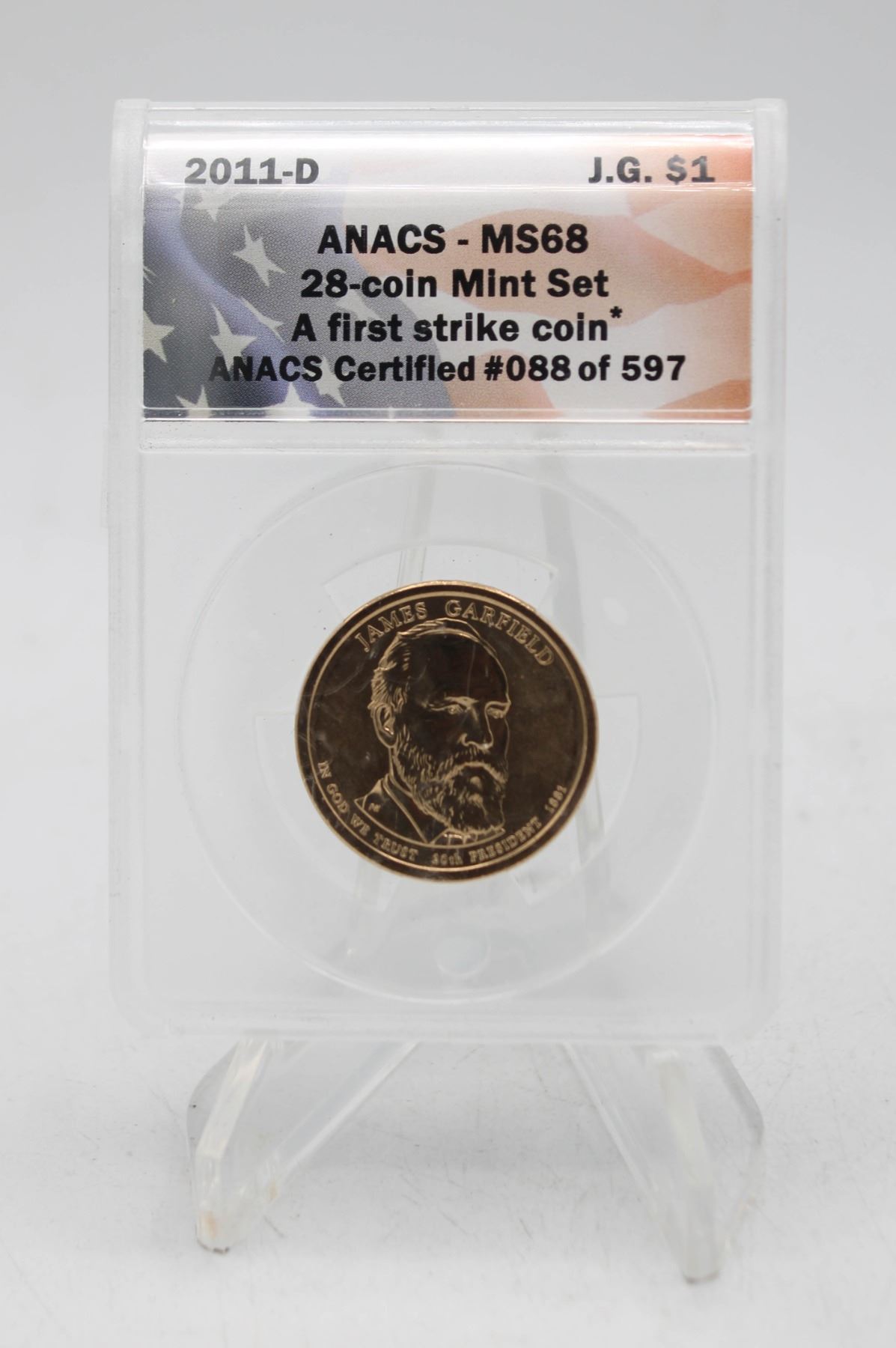 2011D USA GARFIELD $1 COIN. CERTIFIED.