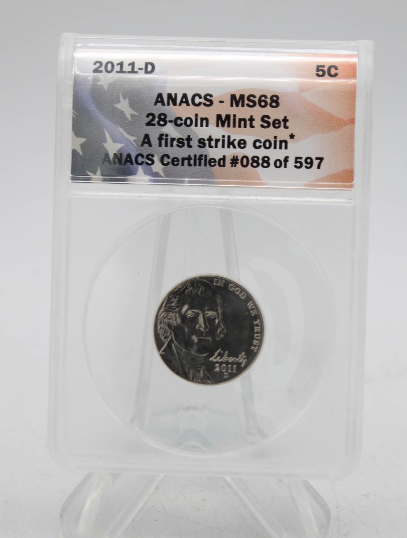2011D USA JEFFERSON 5 CENTS COIN. CERTIFIED.