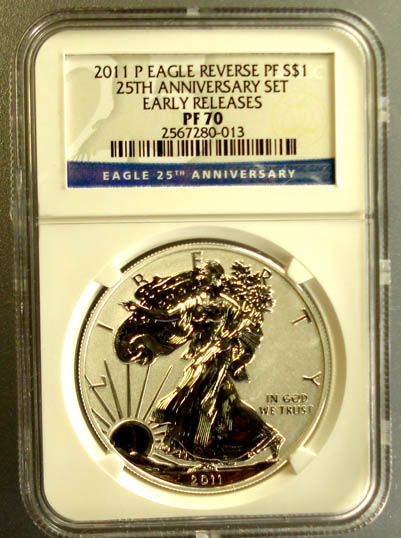 2011P 25 TH ANNIVERSARY AMERICAN SILVER EAGLE EARLY RELEASE NGC REVERSE PF70,
