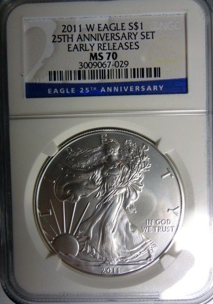 2011W 25TH ANNIVERSARY AMERICAN SILVER EAGLE EARLY RELEASE NGC MS70
