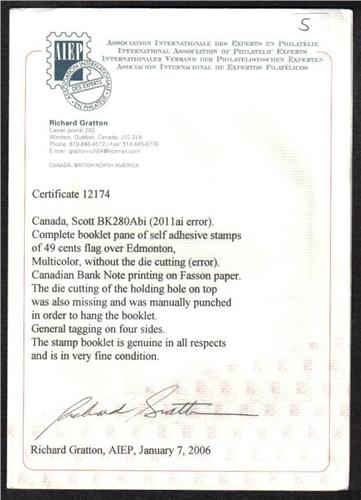 #2011ai ERROR BK280Abi FULL IMPERF BOOKLET