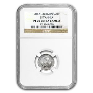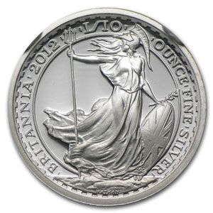 2012 1/10 oz Silver Britannia PF-70 UCAM NGC **|**|** This 1/10 oz Silver Britannia coin is a silver treasure for its beauty and silver value. Produced by the Royal Mint, the 2012 Silver Britannia coin is UK legal tender and has a face value of 20p. Buy Silver Britannia coins to add to your silver coin colle ; MSRP: $200
