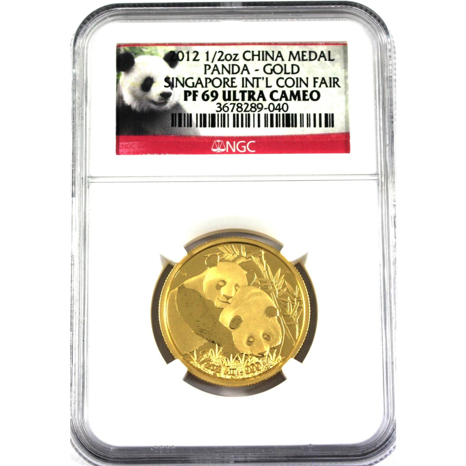 2012 1/2 Gold China Medal Panda- Singapore International Coin Fair. NGC Certified PF69 Ultra Cameo! (Tax Exempt)