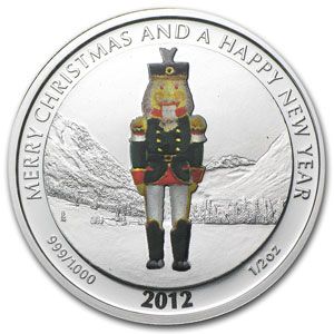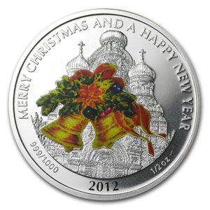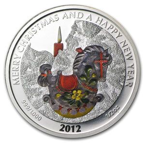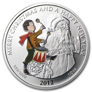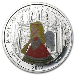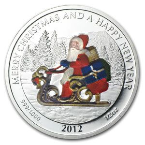 2012 1/2 oz .999 Fine Silver 6 Coins Christmas tree case with real Christmas lights! Stock photo