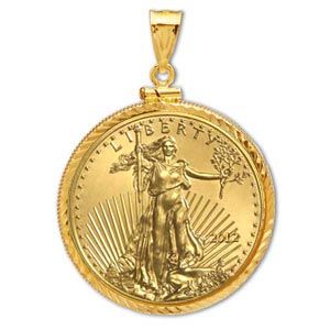 2012 1/2 oz Gold Eagle Pendant (Diamond-ScrewTop Bezel) **|**|** 2012 1/2 oz Gold Eagle Pendant (Diamond-ScrewTop Bezel) Brilliant Uncirculated, Deno: $25, Diam: 27mm, Thickness: 2.13mm ; MSRP: $4000