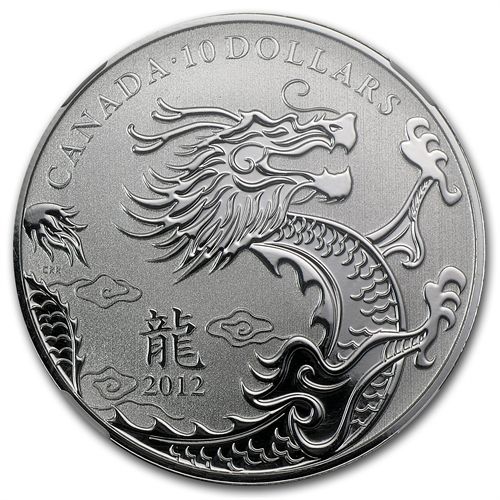 2012 1/2 oz Silver Canadian $10 - Year of the Dragon SP **|**|** Year: 2012 ; Mint Mark: Specimen-70 ; Denomination: $10 ; MSRP: $100