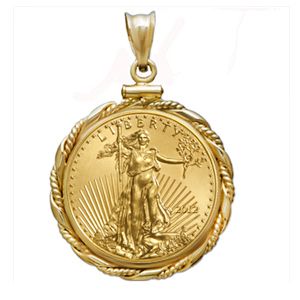 2012 1/4 oz Gold Eagle Pendant (Fancy Cable-ScrewTop Be **|**|** 2012 1/4 oz Gold Eagle Pendant (Fancy Cable-ScrewTop Bezel) 14KT, Brilliant Uncirculated, $10, Diam: 22mm, Thickness: 1.83mm ; MSRP: $2600