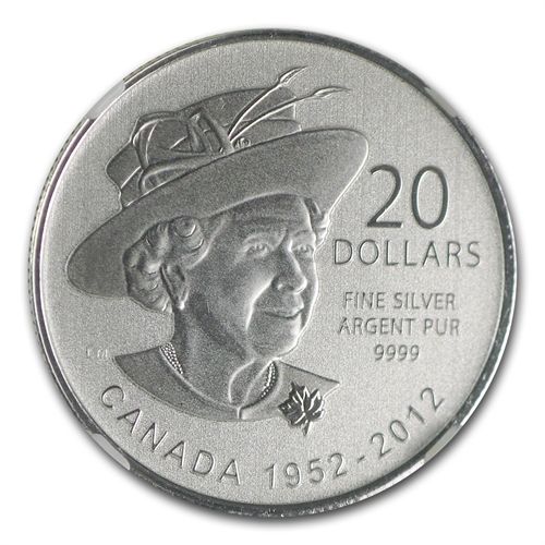 2012 1/4 oz Silver Canadian $20 Diamond Jubilee Coin SP **|**|** Year: 2012 ; Mint Mark: SP-70 ; Denomination: $20 ; MSRP: $100