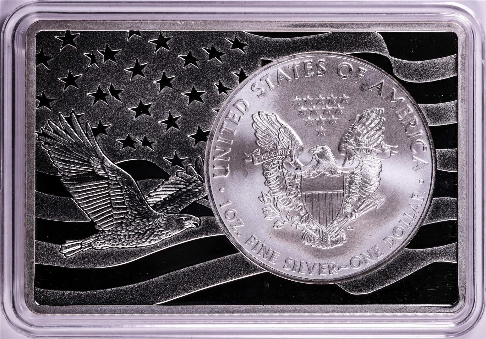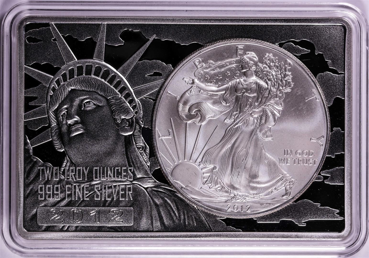 One 2012 $1 American Silver Eagle Coin & 2oz Silver Bar Set.