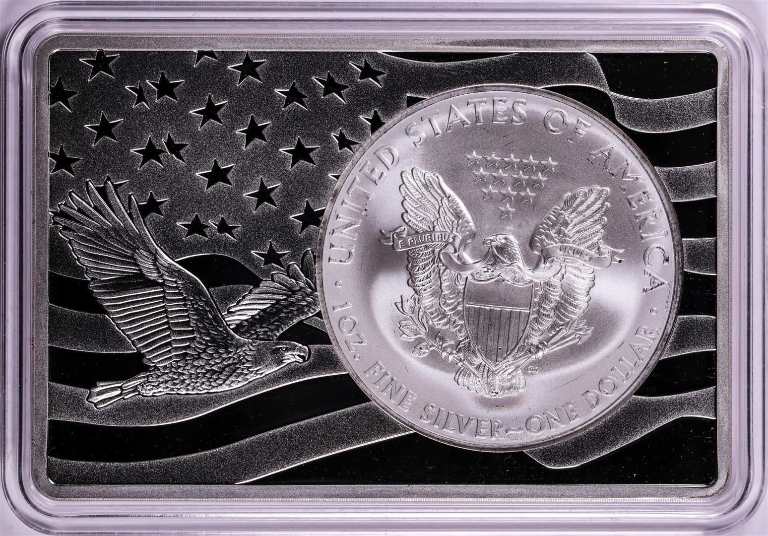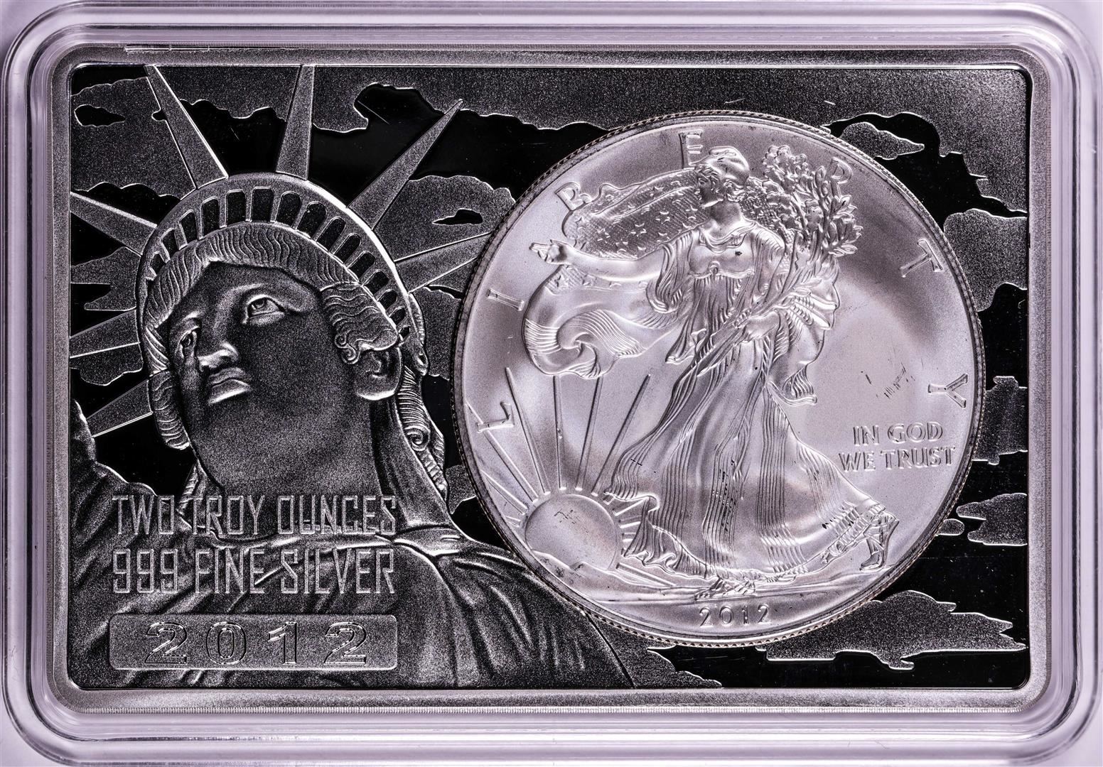 One 2012 $1 American Silver Eagle Coin & 2oz Silver Bar Set.