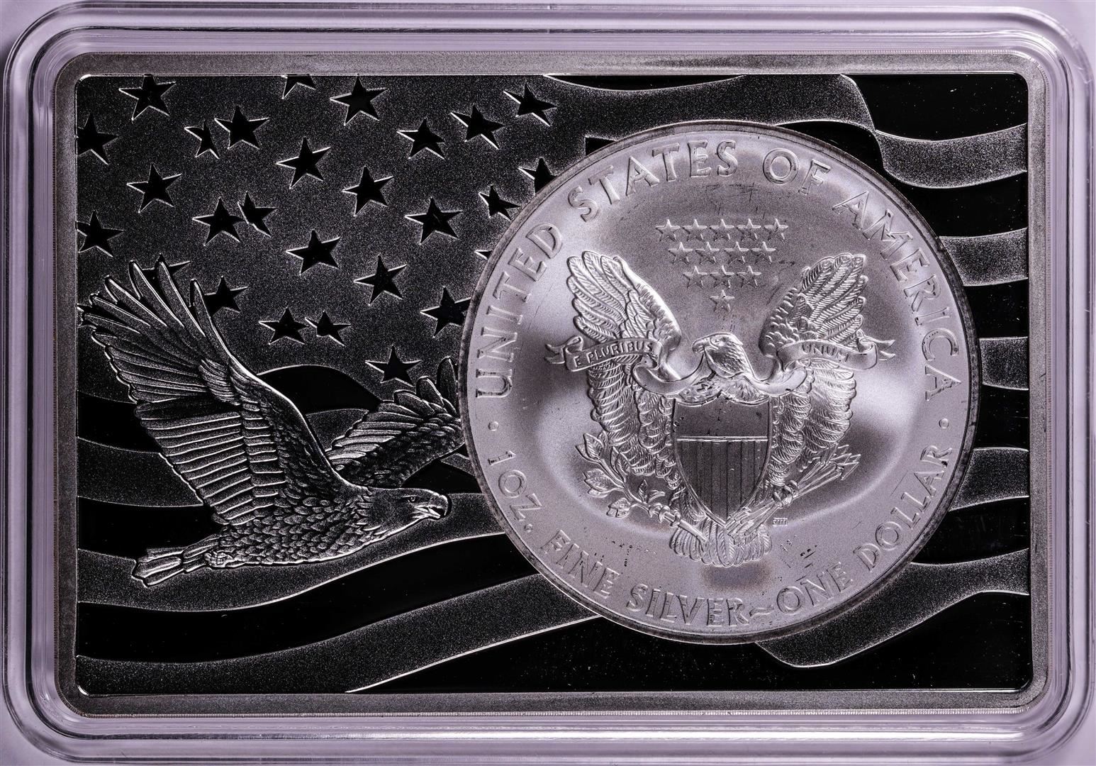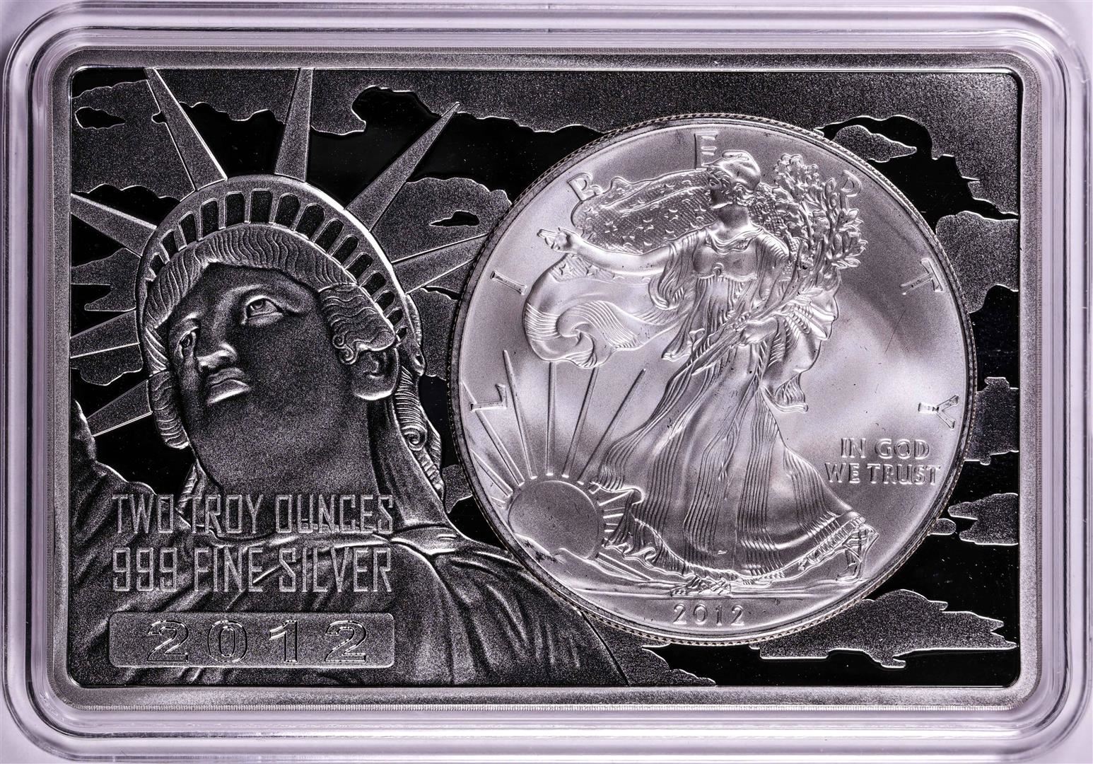One 2012 $1 American Silver Eagle Coin & 2oz Silver Bar Set.