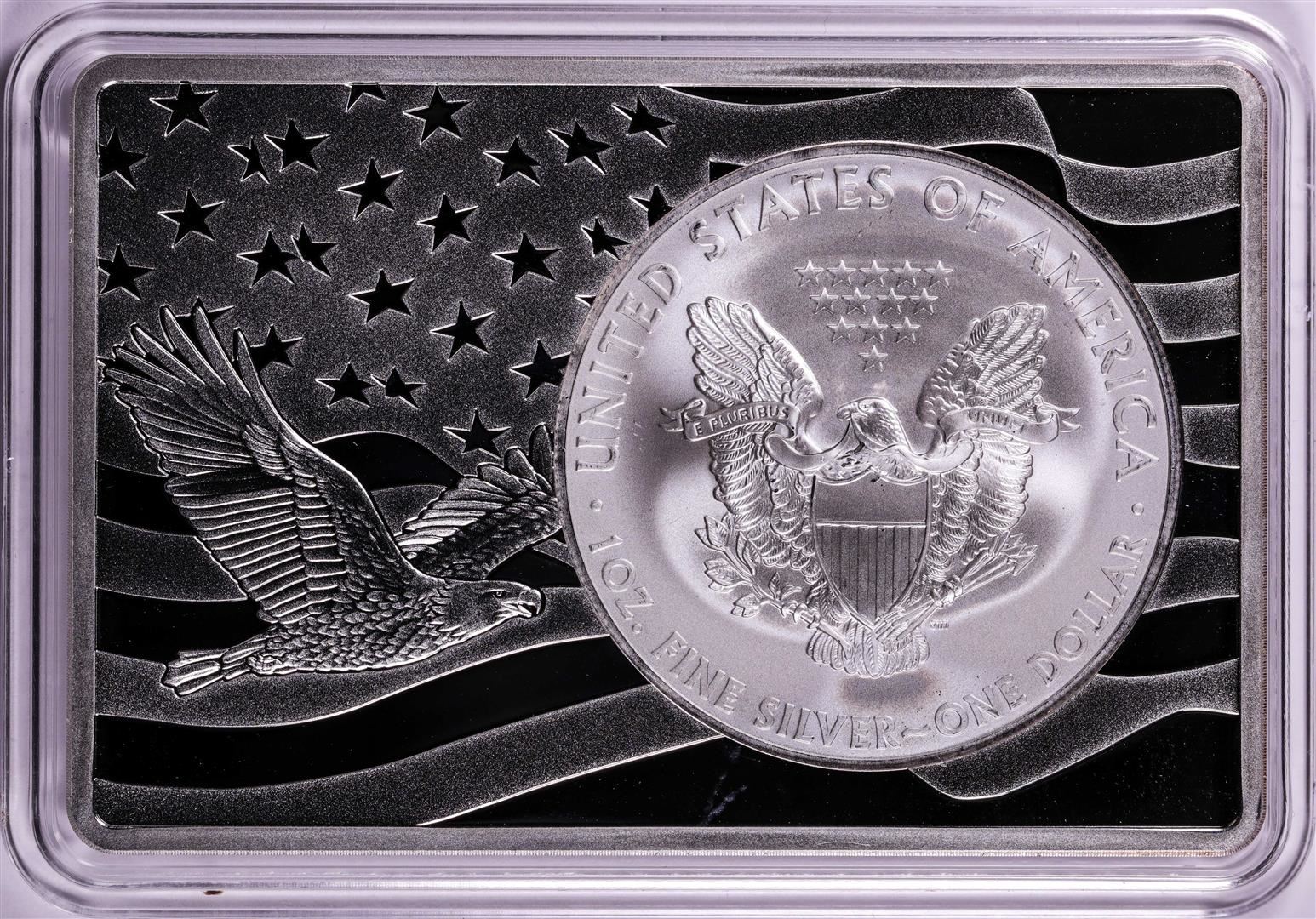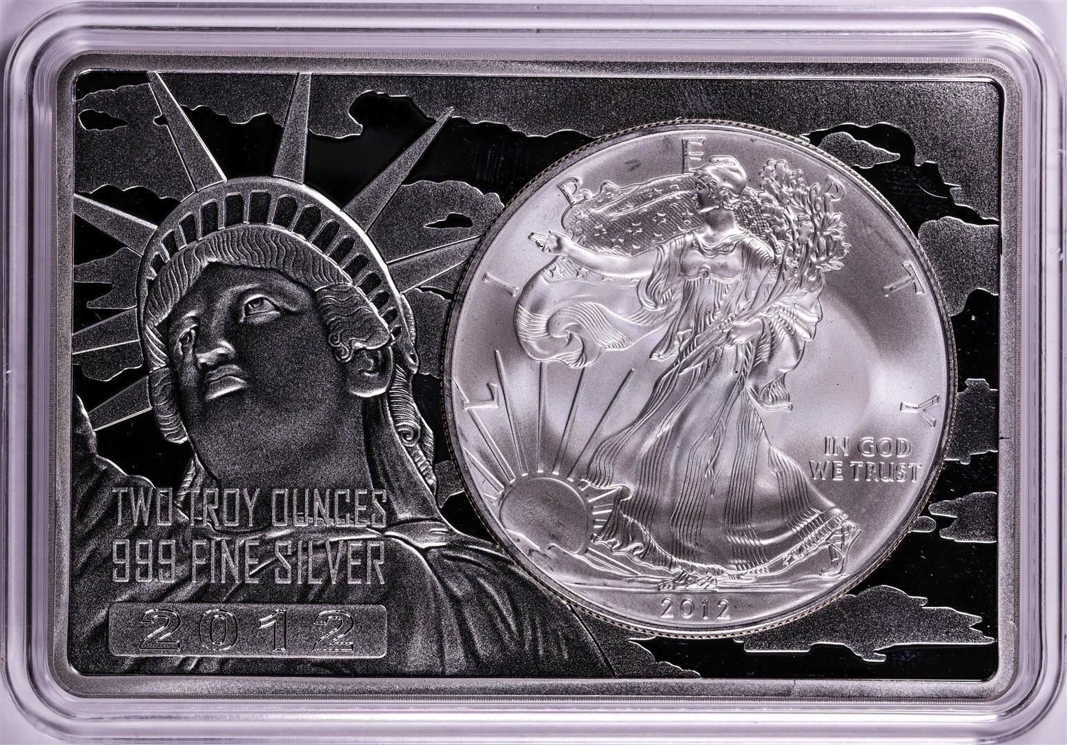 One 2012 $1 American Silver Eagle Coin & 2oz Silver Bar Set.