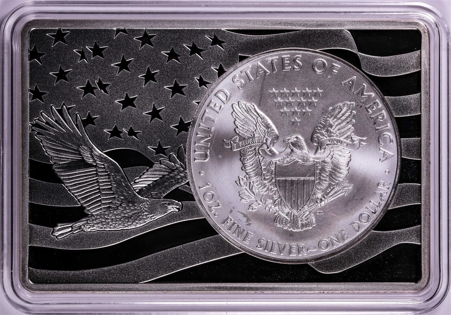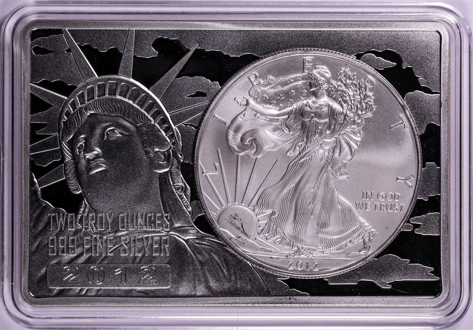 One 2012 $1 American Silver Eagle Coin & 2oz Silver Bar Set.