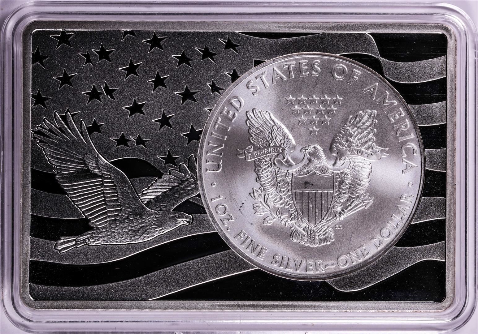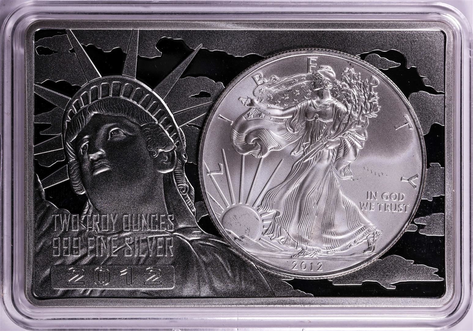 One 2012 $1 American Silver Eagle Coin & 2oz Silver Bar Set.