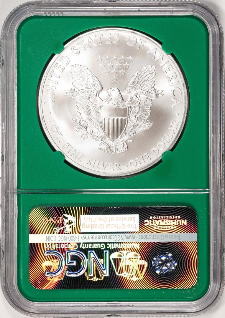One 2012 $1 American Silver Eagle Coin NGC MS69 Green Core. NGC Certified.