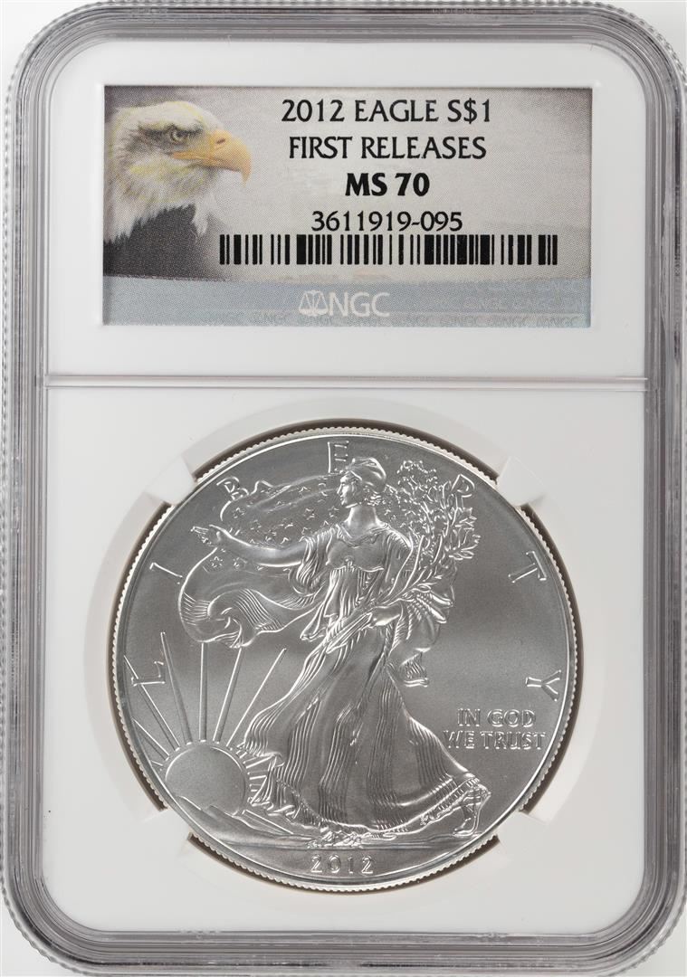 One 2012 $1 American Silver Eagle Coin NGC MS70 First Releases. NGC Certified.