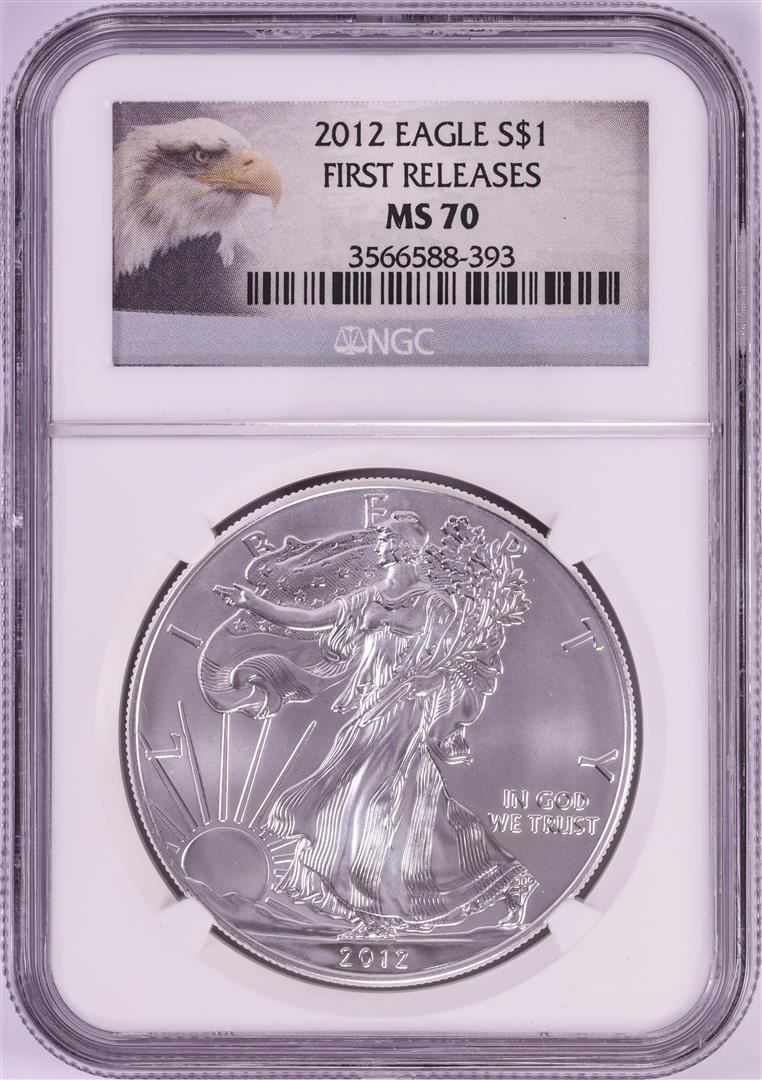 One 2012 $1 American Silver Eagle Coin NGC MS70 First Releases. NGC Certified.