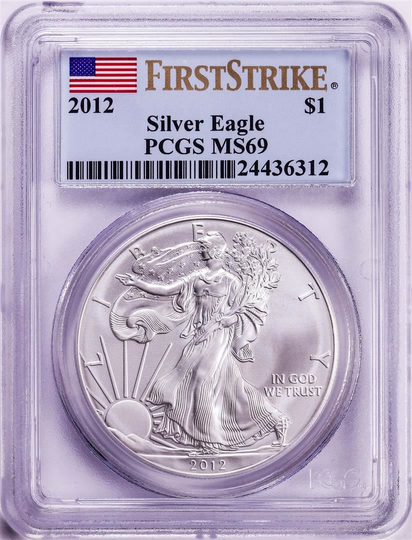One 2012 $1 American Silver Eagle Coin PCGS MS69 First Strike. PCGS Graded.