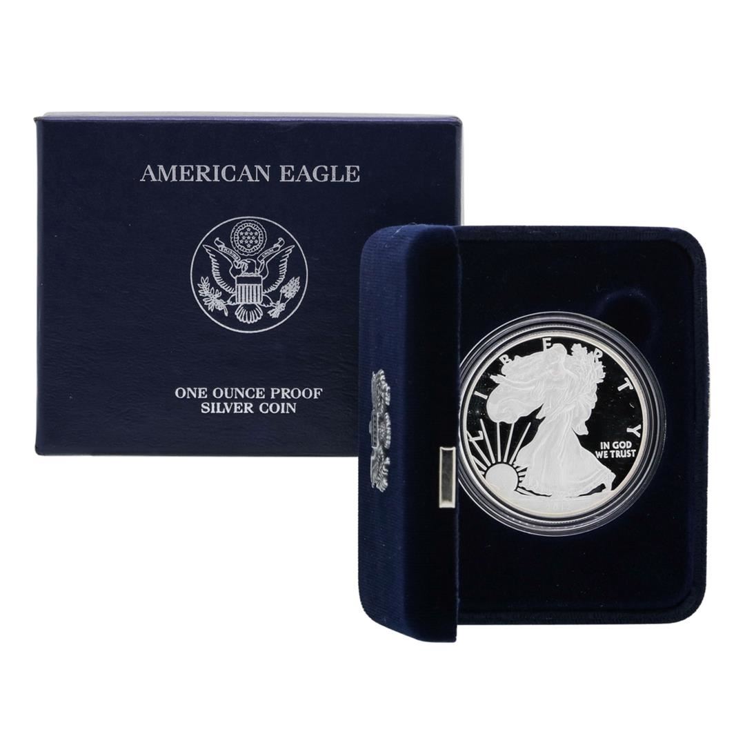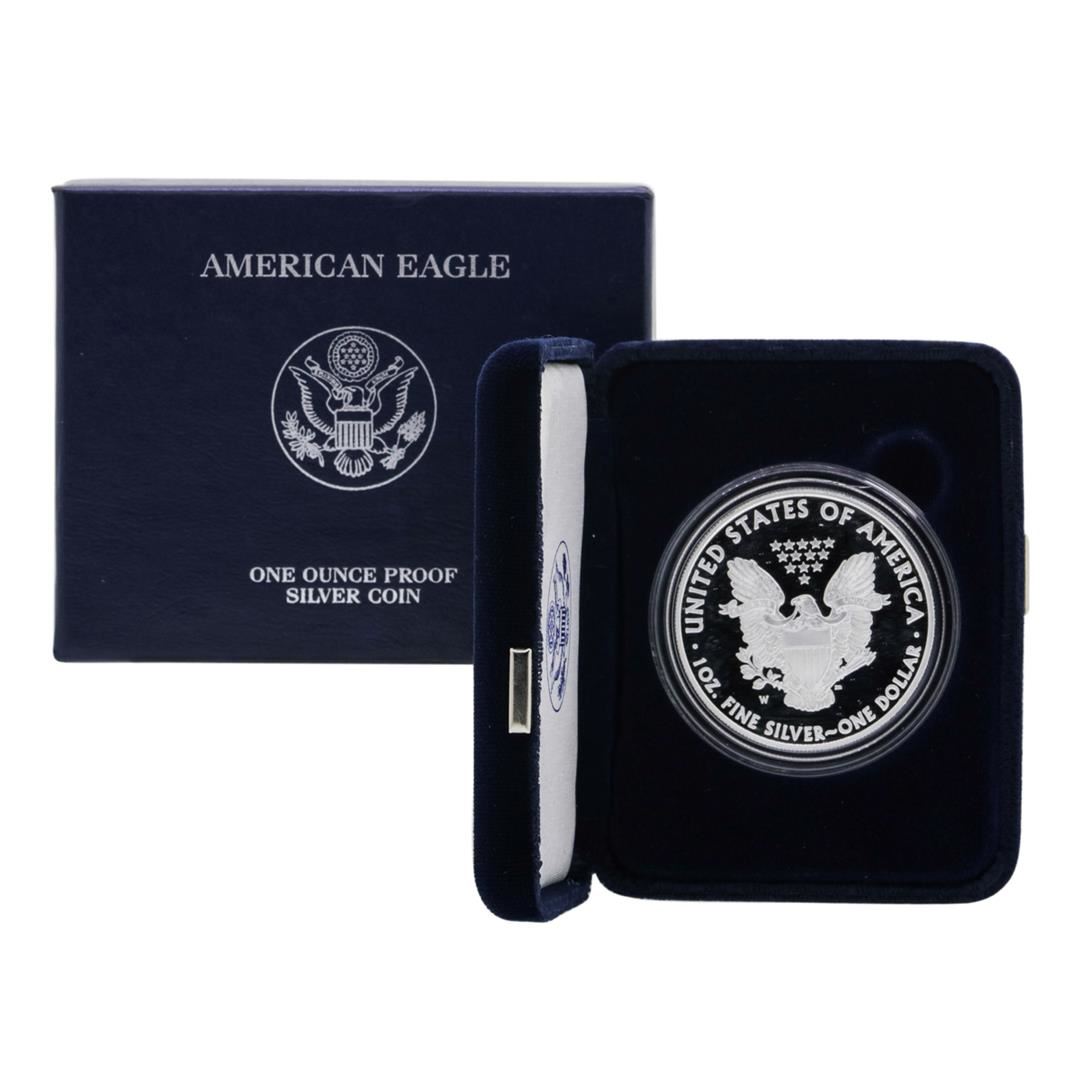 One 2012 $1 American Silver Eagle Proof Coin w/ Box.