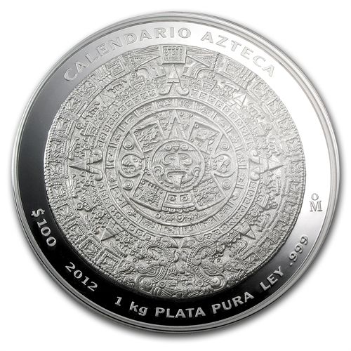 2012 1 Kilo (32.15 oz) Silver Aztec Calendar Coin (W/Bo **|**|** Year: 2012 ; Mint Mark: PL ; Grade: Mo - Mexico City ; Denomination: $100 Pesos ; MSRP: $2500