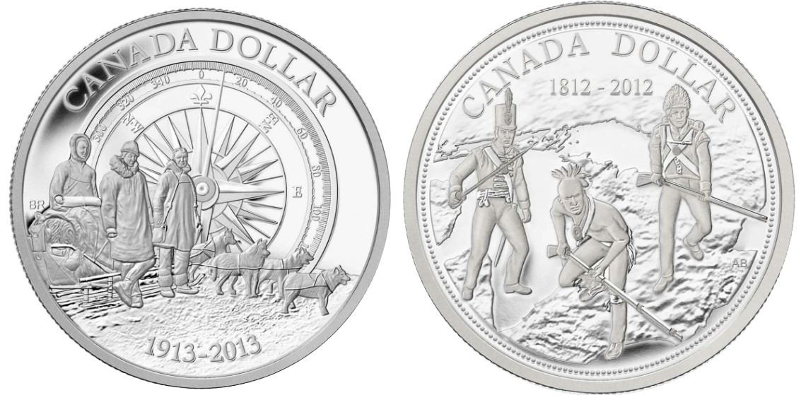 2012 $1 The War of 1812 & 200th Anniversary, 2013 $1 Arctic Expedition - Lot of 2 Pure Silver Dollars.