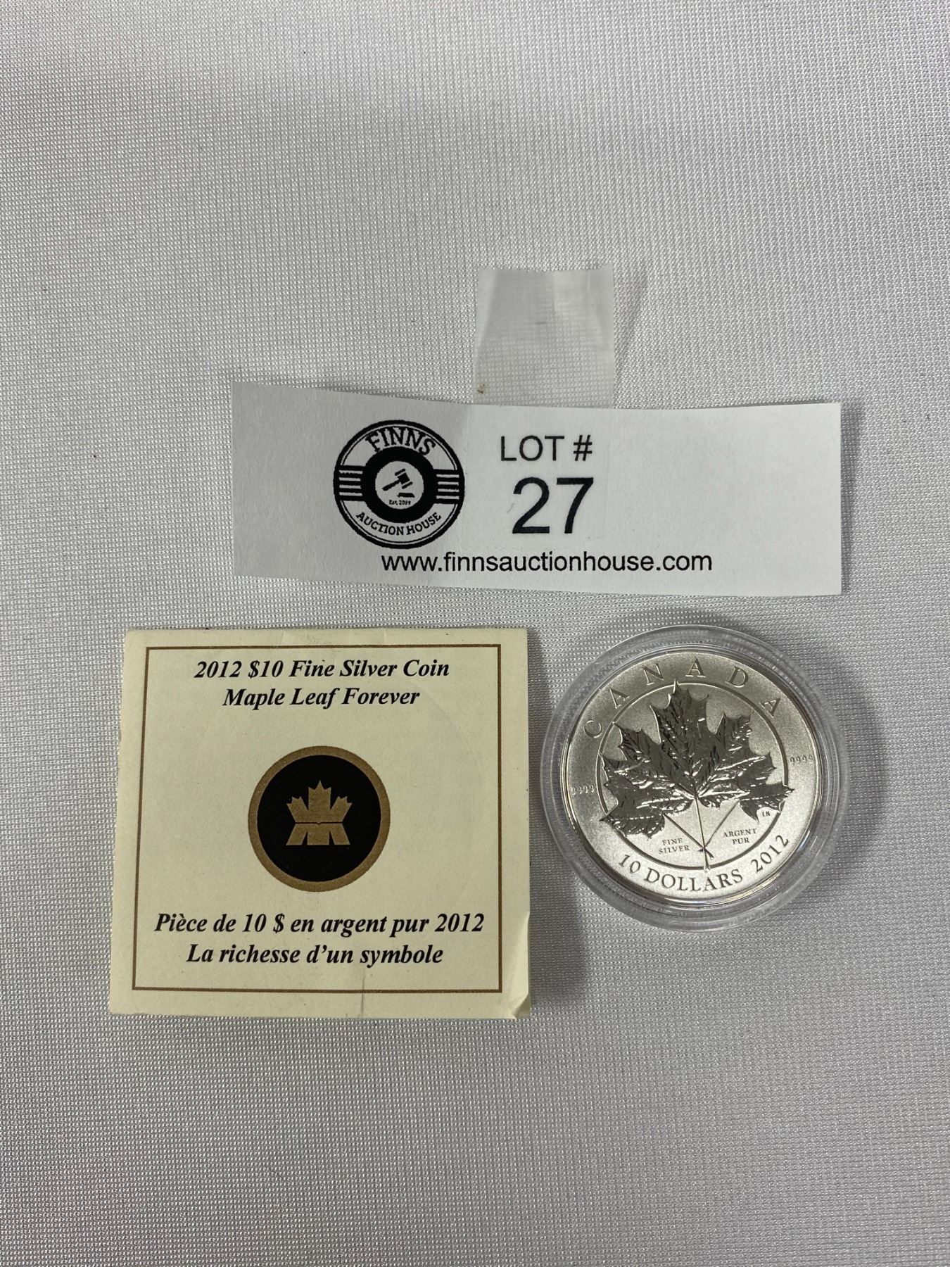 2012 $10 Fine Silver Coin In Original Package