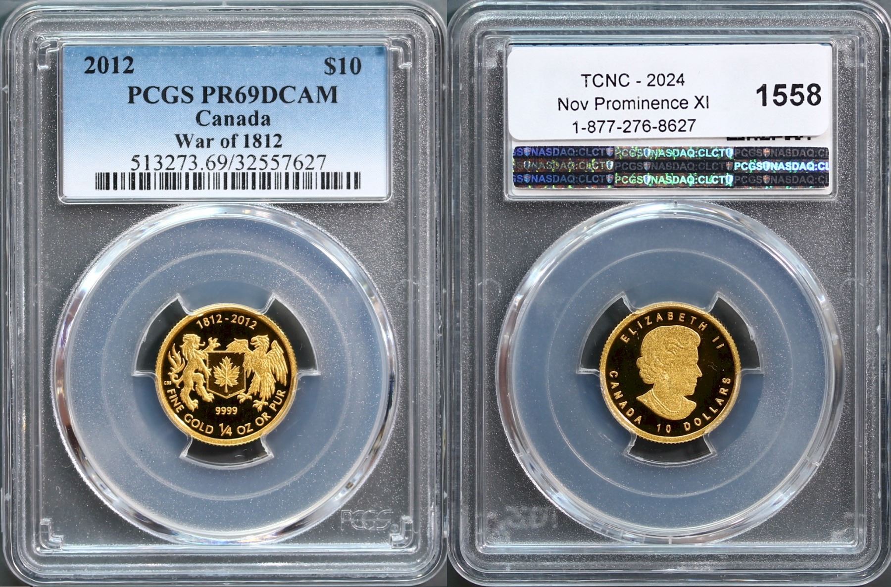2012 $10 Gold War of 1812, PCGS Splendid PROOF-69DCAM.